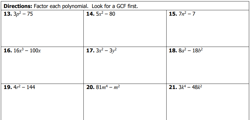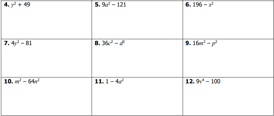 Homework 7 - Factoring Difference of Squares