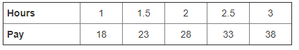 Jack works after school. Each day, he is paid a set amount, plus an hourly wage. Look at the table. Choose the linear function f Jack can use to find his pay.