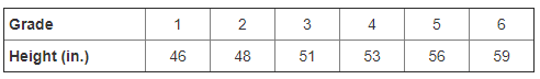 The table shows grade levels and heights of 6 students.