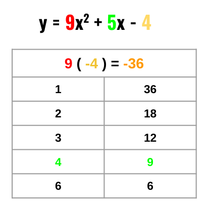 Gen was completing this CAB table and decided that 9 and 4 was the correct pair to move forward in the factoring process. Are they correct? If not, what would be the correct pair and why?