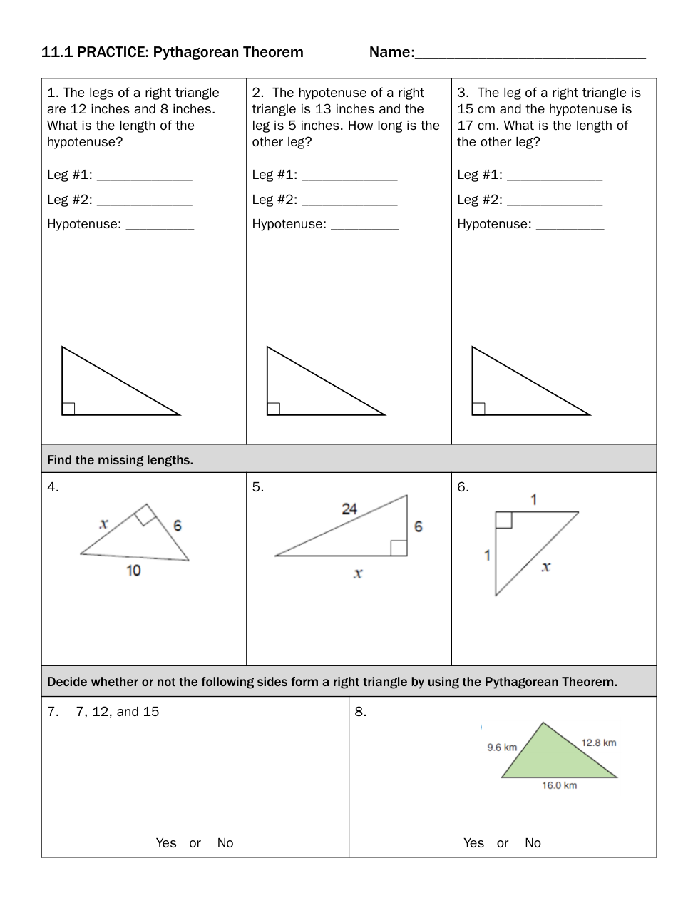 What is the length of the hypotenuse for problem #1? (round to nearest tenth)
