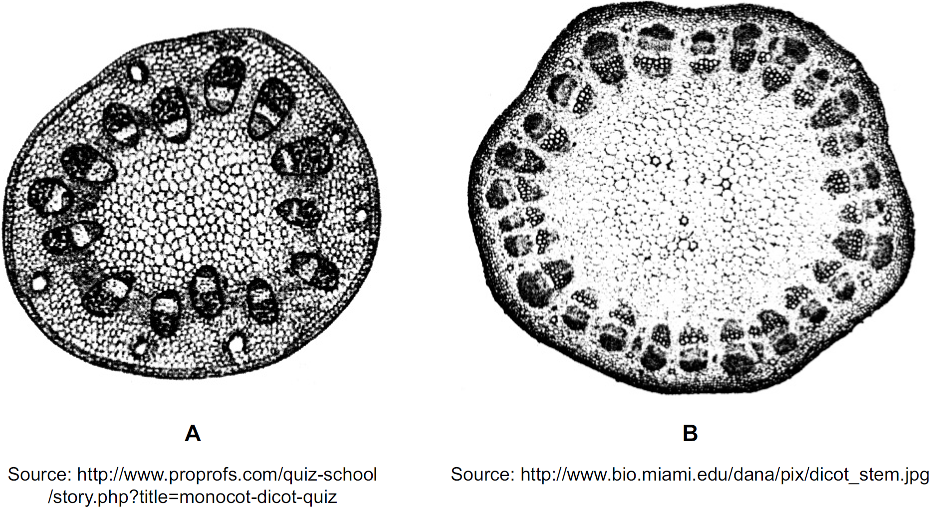 A student compared two stem cross sections. Stem cross section A is from a plant that can be used to produce products with valuable medicinal properties. Stem cross section B is from a plant growing in the same area of the forest and its usefulness for producing medicines is unknown. The student concluded that the stem cross sections had many structural similarities and that the plant that produced cross section B would produce the same valuable medicinal products.