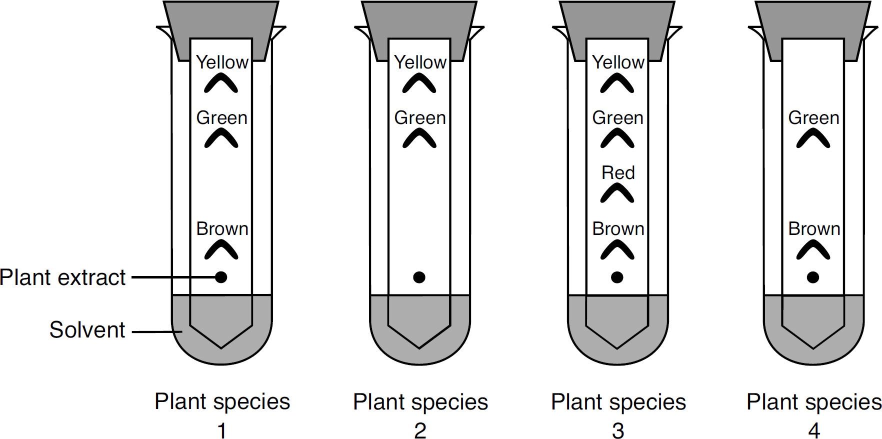 In an effort to determine how closely related several plant species are, a student performed the laboratory test shown below.