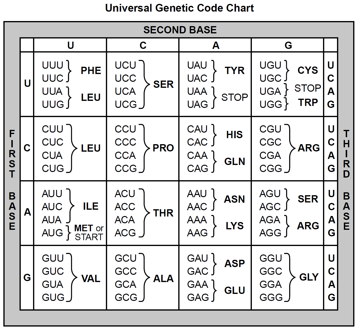 When provided with a sequence of bases in one segment of mRNA, the Universal Genetic Code Chart is used to