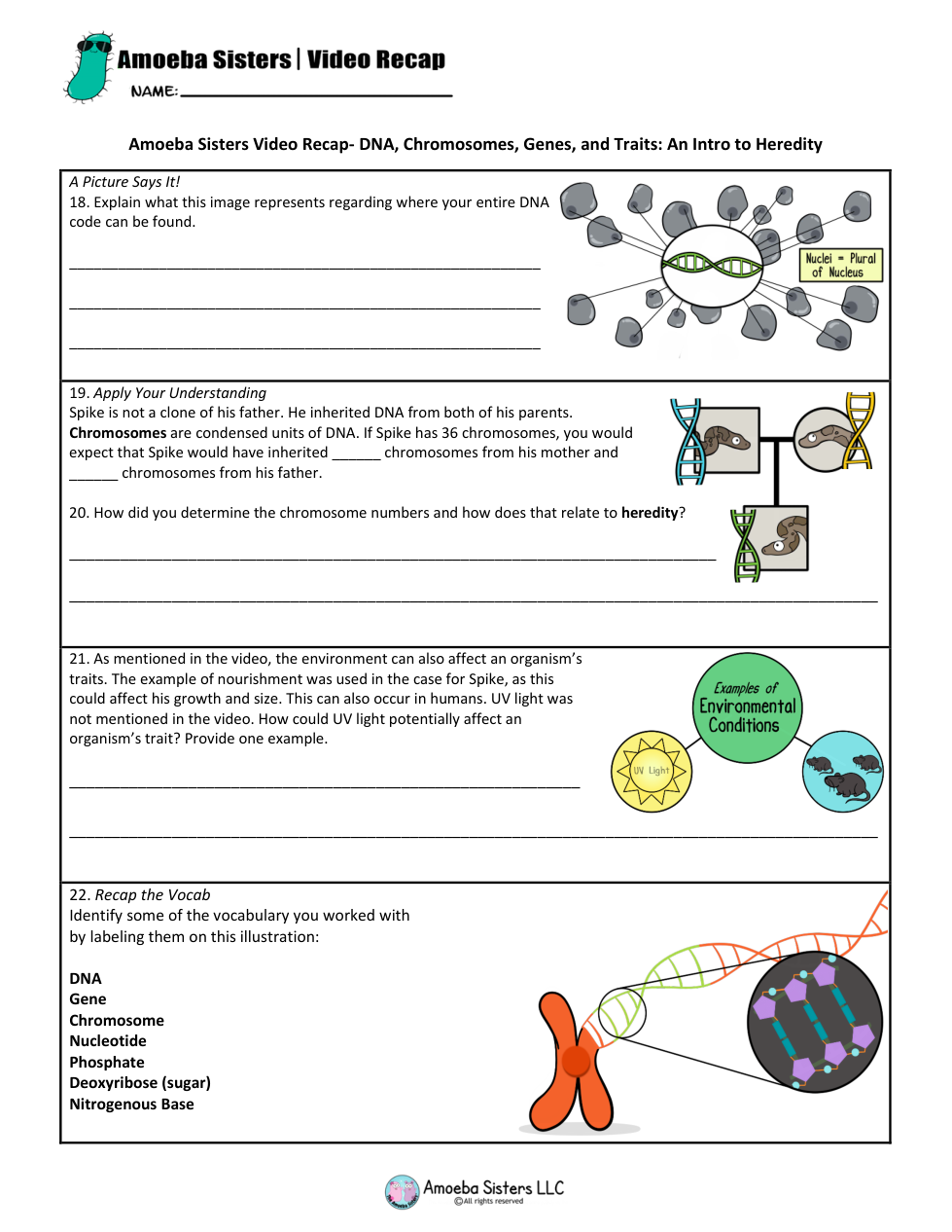 Spike is not a clone of his father. He inherited DNA from both of his parents. Chromosomes are condensed units of DNA. If Spike has 36 chromosomes, you would expect that Spike would have inherited _______ chromosomes from his mother and _______ chromosomes from his father.