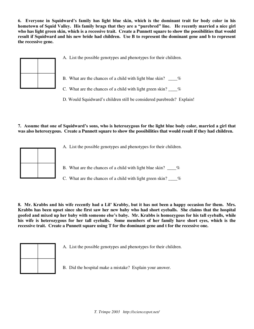 Link to extra practice with Punnett Squares