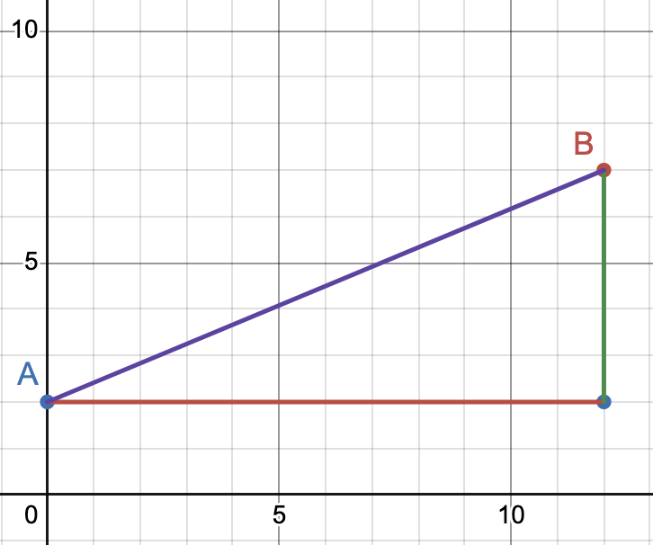 (Level 2) Find the distance between points A and B. Show your work in the workspace.