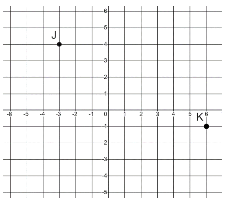 (Level 3) Find the distance between Point J at (-3, 4) and Point K at (6, -1). Show your work in the workspace.