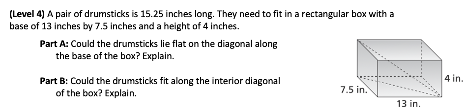 Could the drumsticks fit along the interior diagonal of the box? Explain.