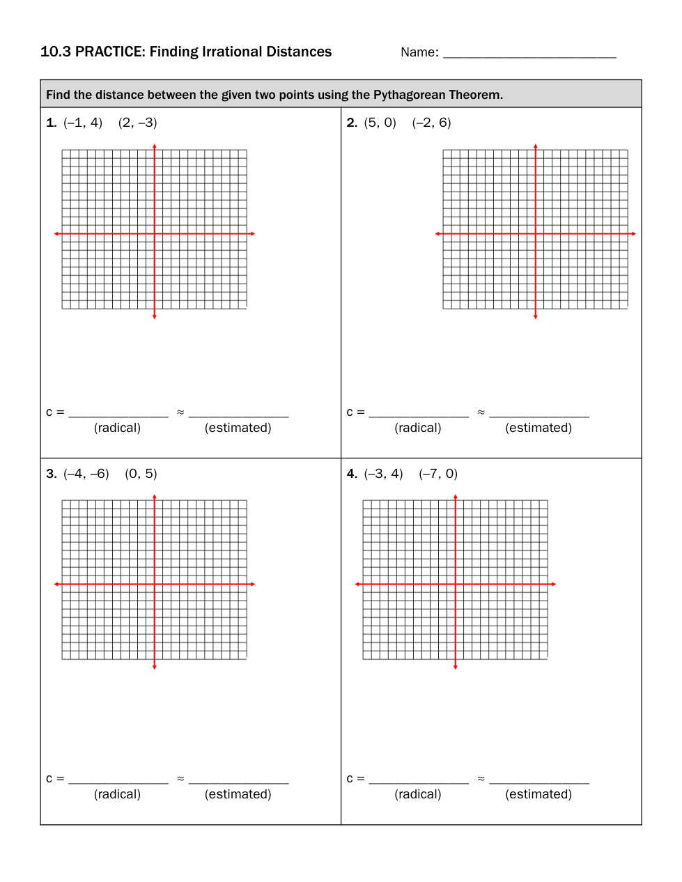 11.3 Practice: Finding Irrational Distances