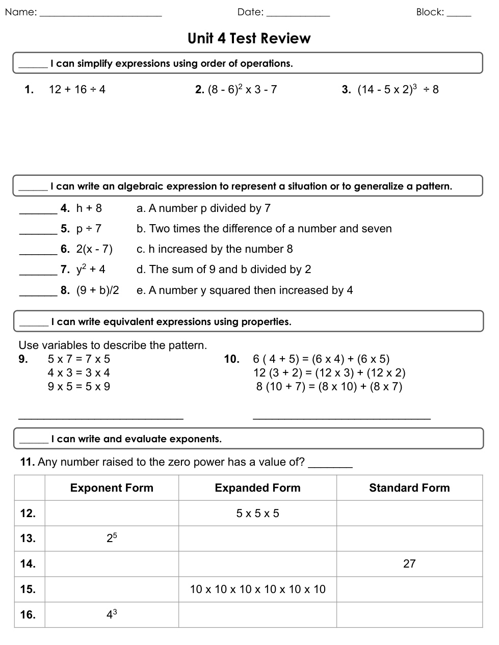 VMS EDM 4 Grade 6 Unit 4 Test Review