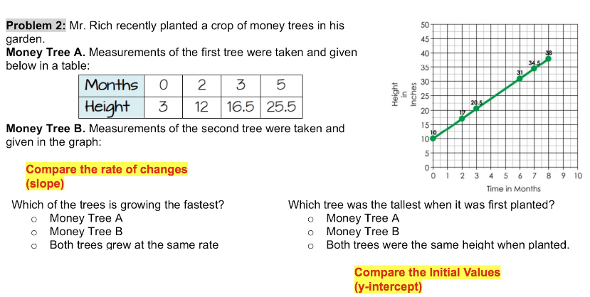 Which of the trees is growing at a faster rate?