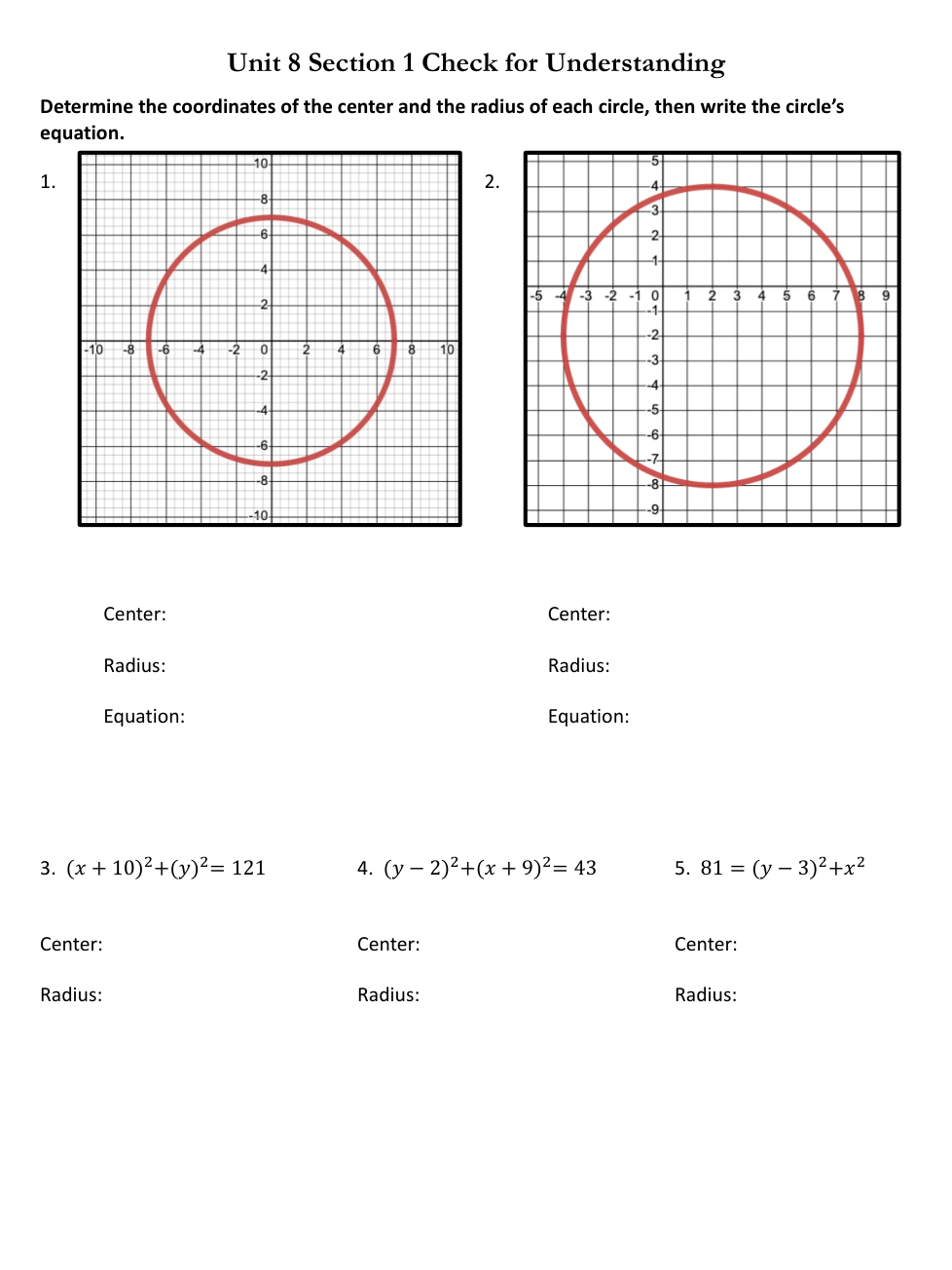 Unit 8 Checks for Understanding