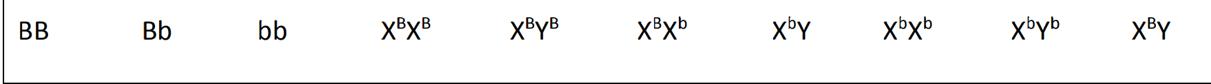 Color blindness is a sex-linked recessive disorder on the X chromosome. If the allele “b” is used to denote color blindness, click on the the genotype(s) that correctly represent(s) a female that is color blind.