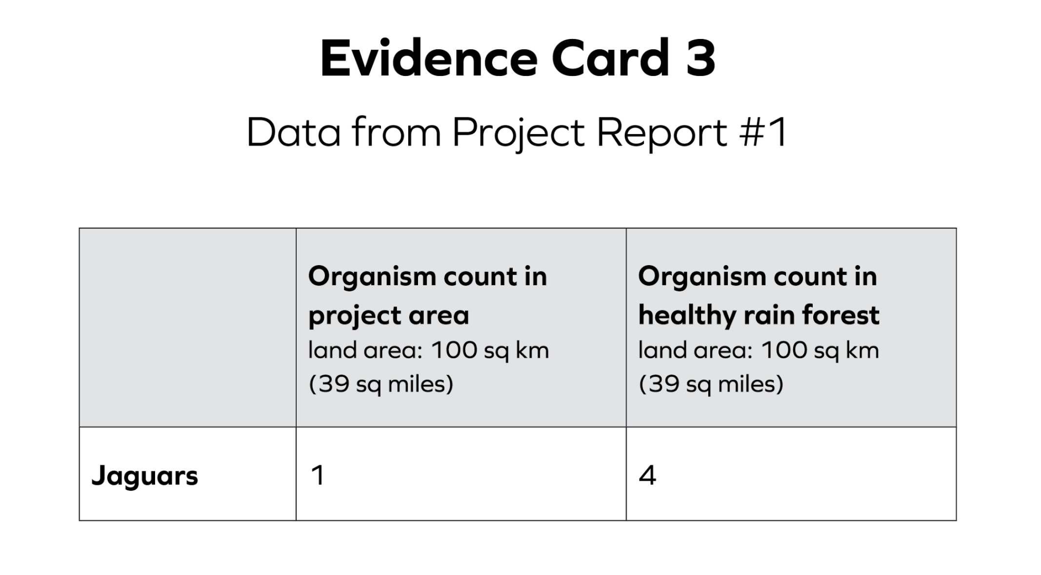 Sentence Starters: The Jaguars and sloths are not thriving because _______. In Evidence Card ___, it shows ______. This means _______. In Evidence Card ___, it shows ______. This means _______