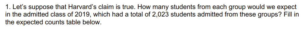 Here are the Observed Counts for the same data. These are the demographics of the students who were actually admitted from the pool.