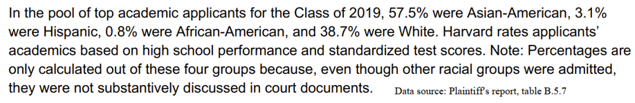 College admission equity has been a large topic of debate in recent years. Let's analyze the pool of top academic applicants to Harvard in 2019