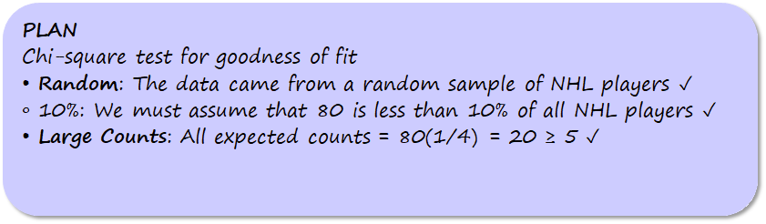We will need to check the conditions for the chi-square test statistic first.