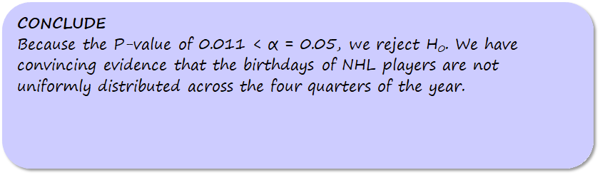 We can use a calculator to calculate the p-value of our test (alternatively, there is a table of values)