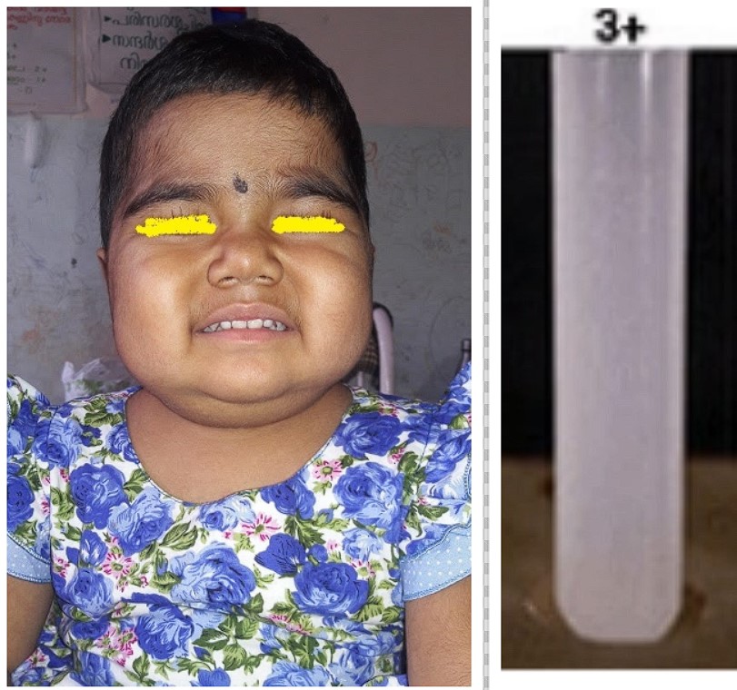 3 Year old female child was brought to EMD with complaints of facial puffiness and abdominal distention , Identify the test done ?