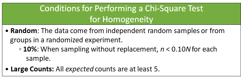 [AP Statistics] 12.2a Chi-Square test for Homogeneity
