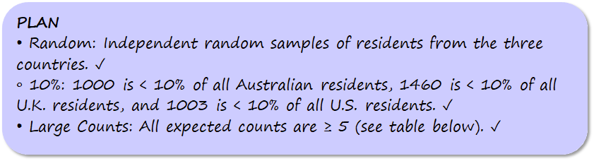 Now we need to check our conditions, which are the same as for the other Chi-Square test