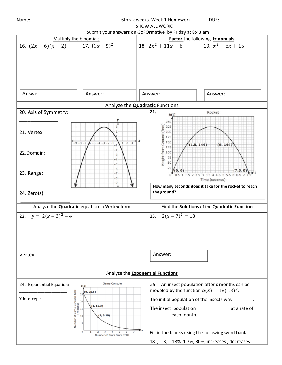 The initial population of the insects was _______. The insect population______________at a rate of________ each month.