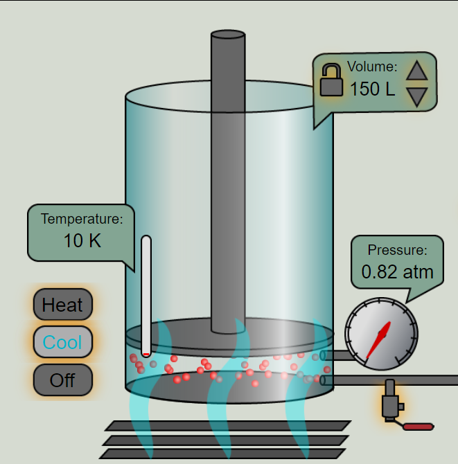 OPEN THE FOLLOWING LINK TO VIEW THE FIRST SIMULATION: https://ch301.cm.utexas.edu/simulations/js/idealgaslaw/