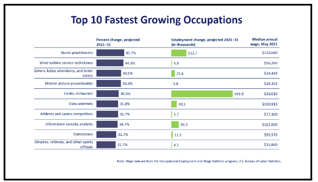 If you were going to choose your future career from this list based solely on your prospects for employment, which of these jobs would you choose? Explain your thinking.