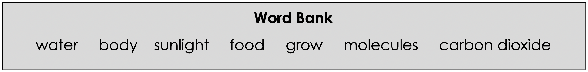 D | arrow_right_alt | Leaves absorb sunlight |