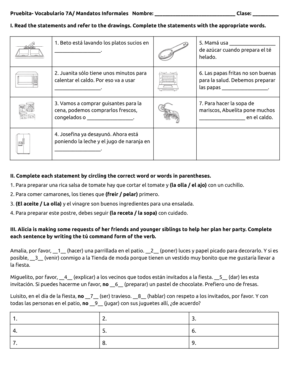 Autentico 2- Mandatos and 7A Vocab Quiz, Tú Commands