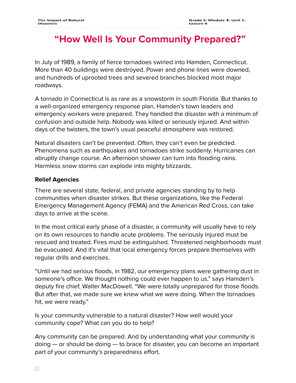 "How Well Is Your Community Prepared" Passage & Questions