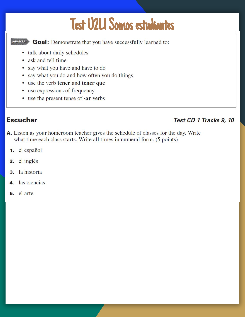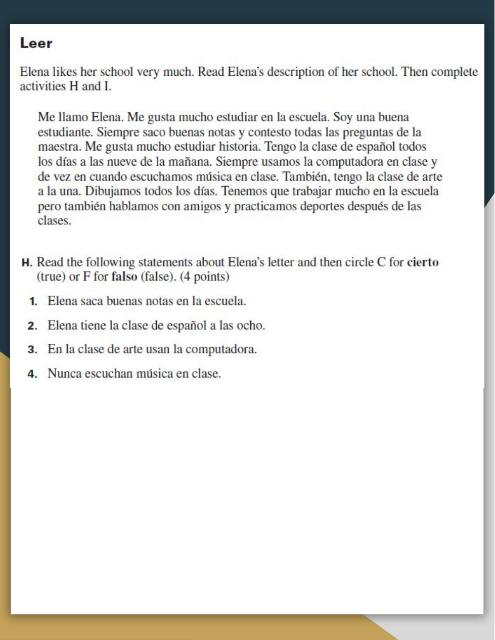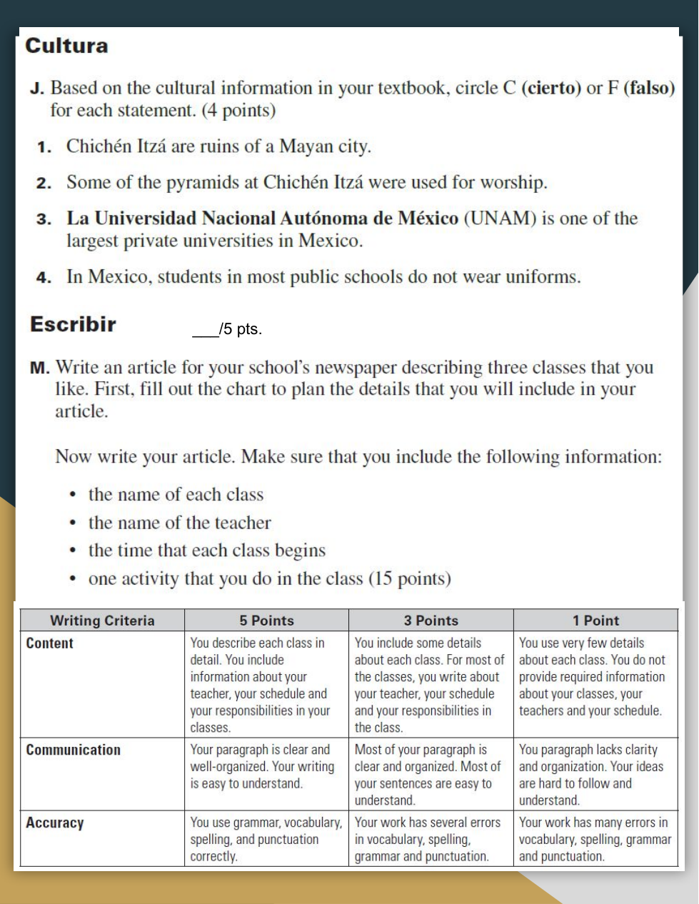 In Spanish, write an article for your school’s newspaper describing three classes that you like. First, fill out the chart to plan the details that you will include in your article.