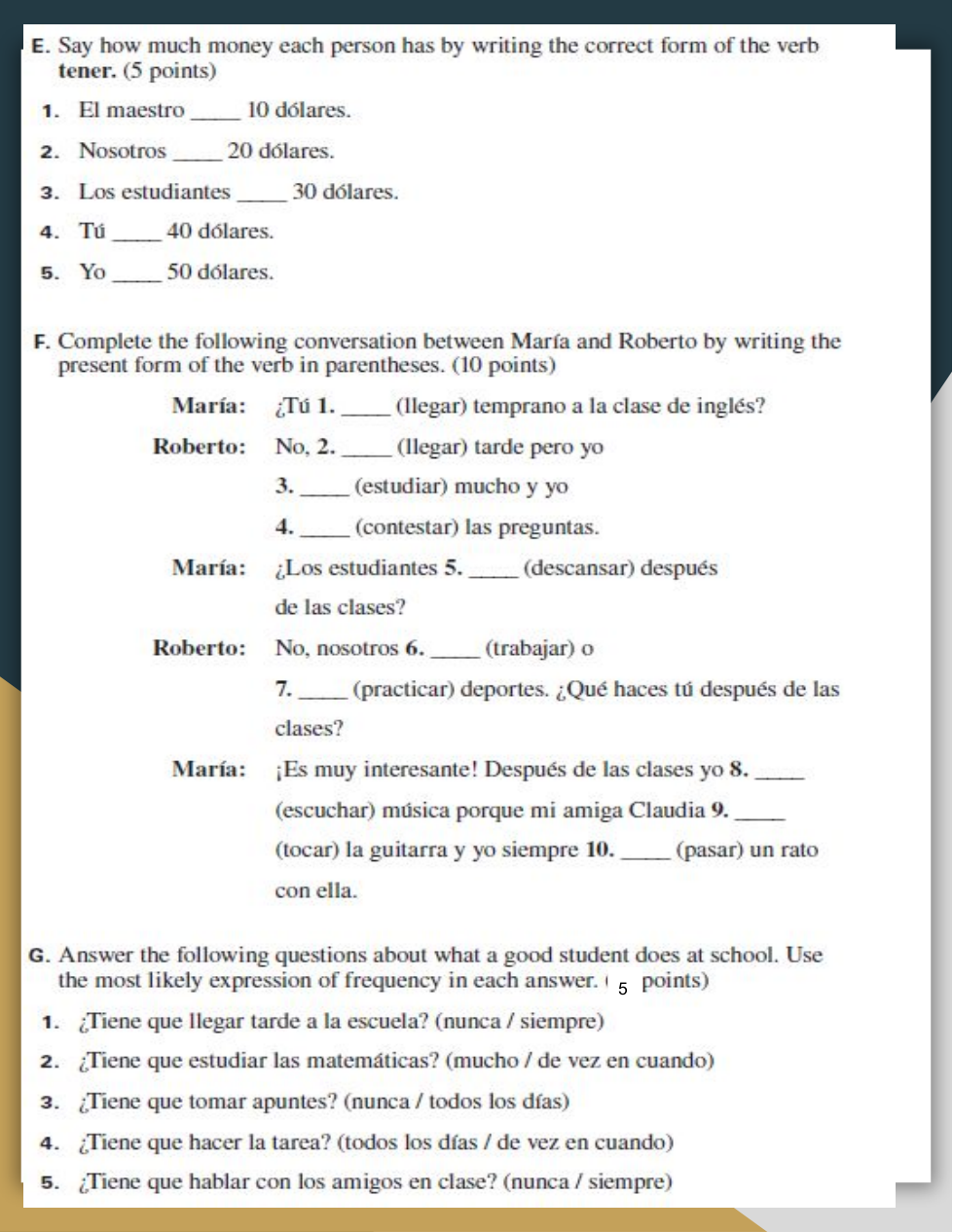 • one activity that you do in the class