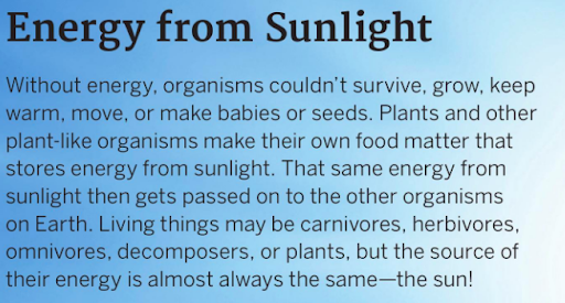 Based on this excerpt from Energy Makes It All Go, what is the source of energy in an ecosystem?