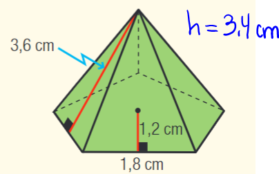 Quelle est la mesure d'un des côtés de la base sachant que l'aire latérale de la pyramide est de 48,3 cm carré ?