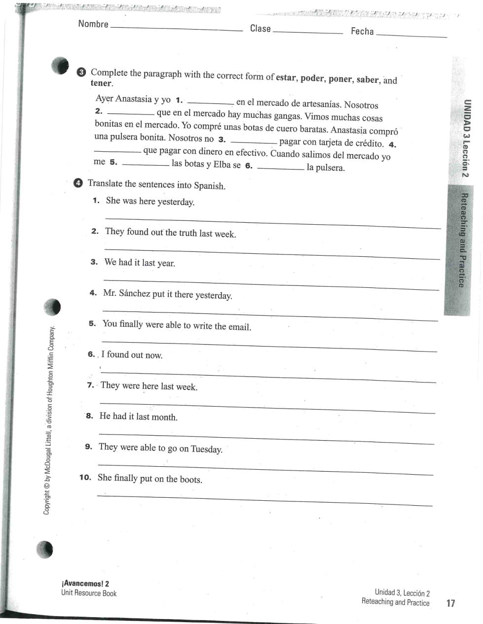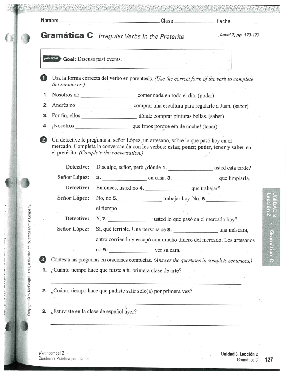 avancemos 2 U3L2: irregular preterite practice, including typed sentences