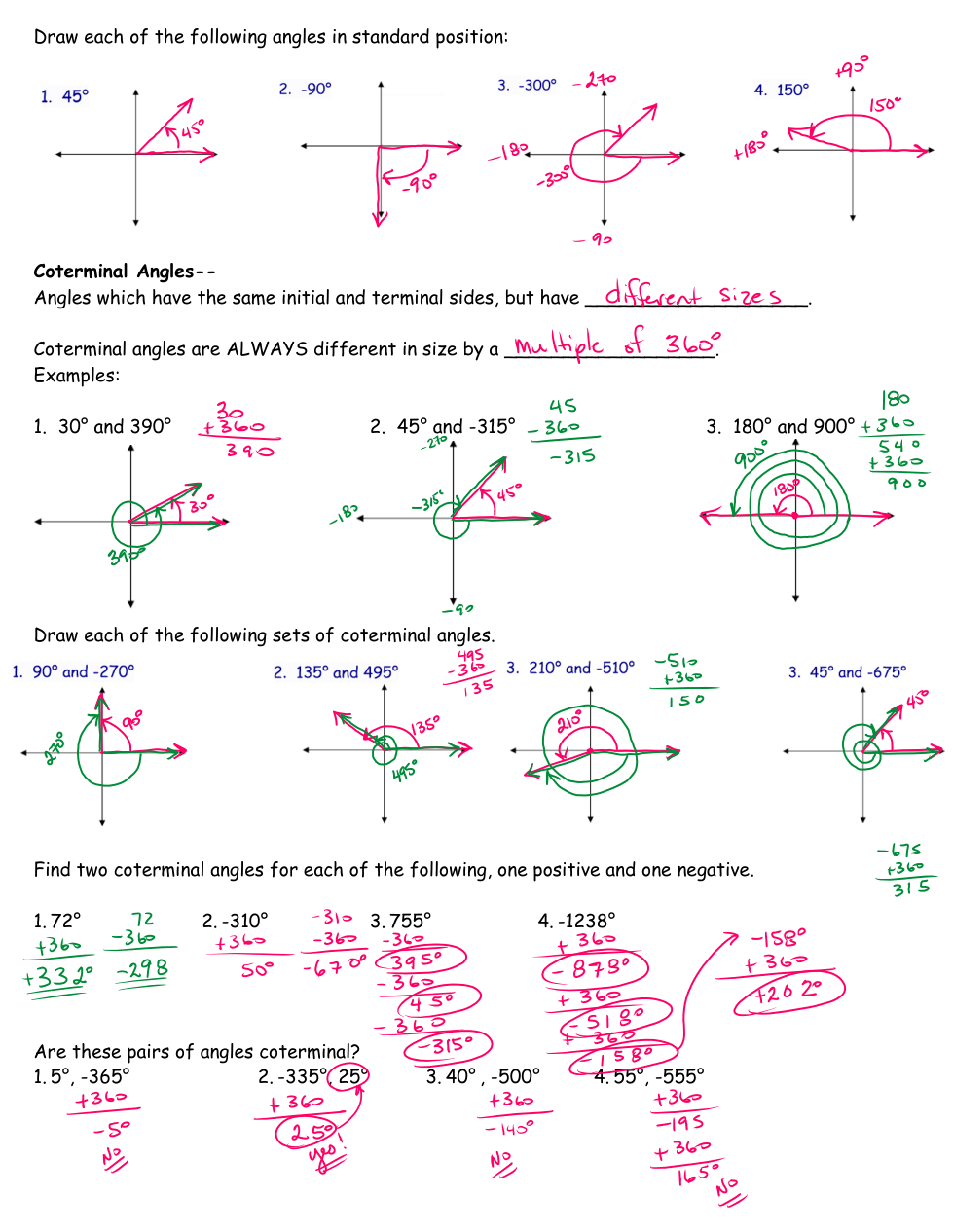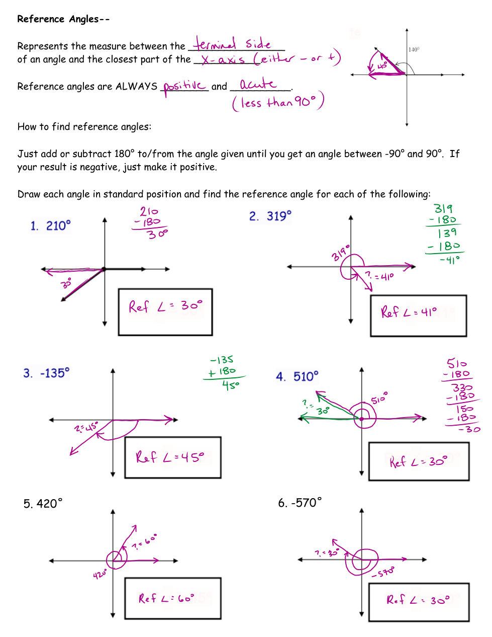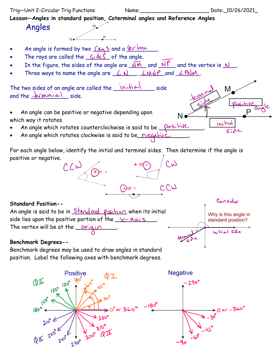 4/26/2023-HW-Angles in Standard Position and Coterminal & Reference Angles