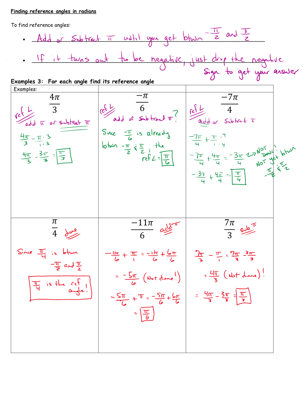 Find the reference angle for the given angle: remember that this should be BETWEEN the values (and the answer could be zero...FYI)