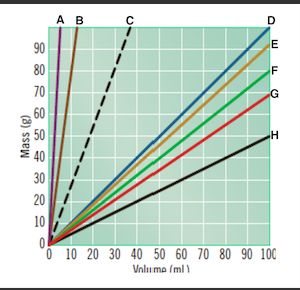 Sketch a line on the graph that would represent the density of water. Be sure to label the axes. Your lines do not have to be perfectly straight.
