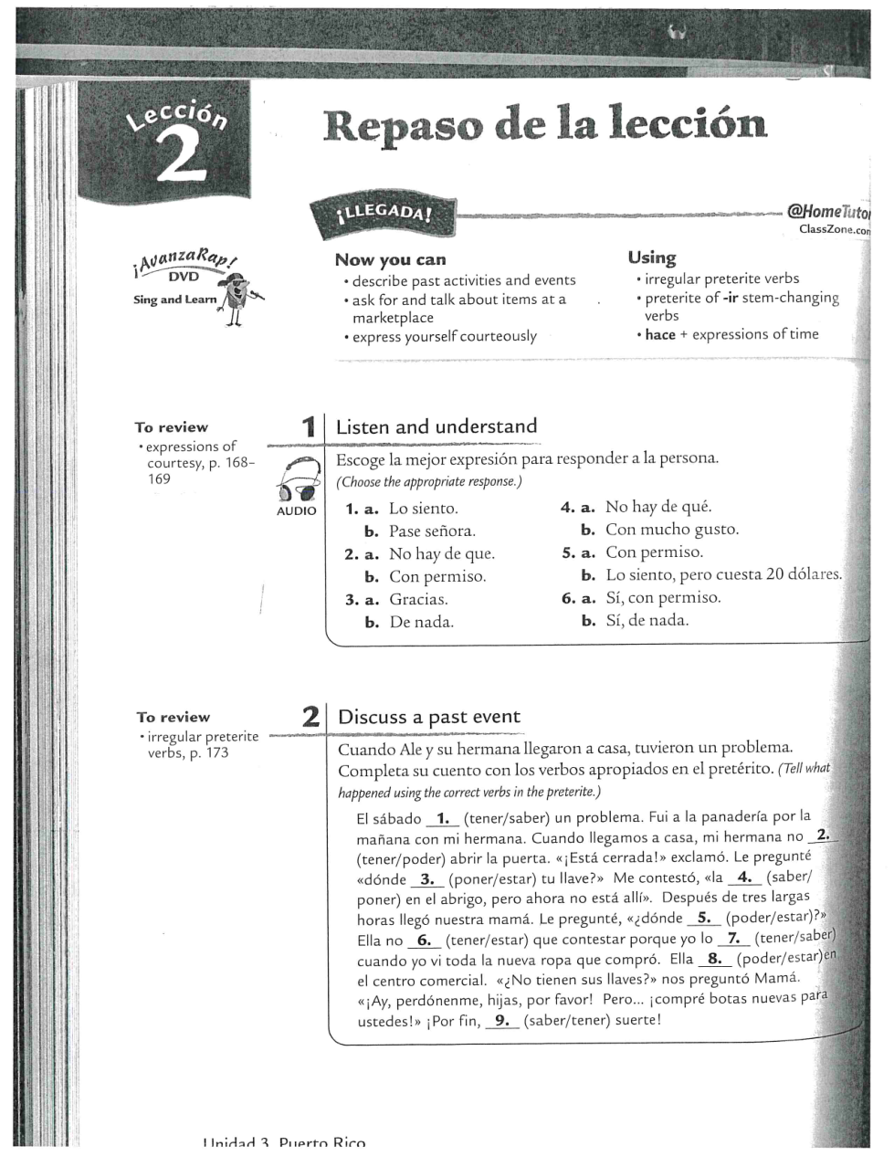 avancemos U3L2 review, irregular and stem-changing preterite with market vocab