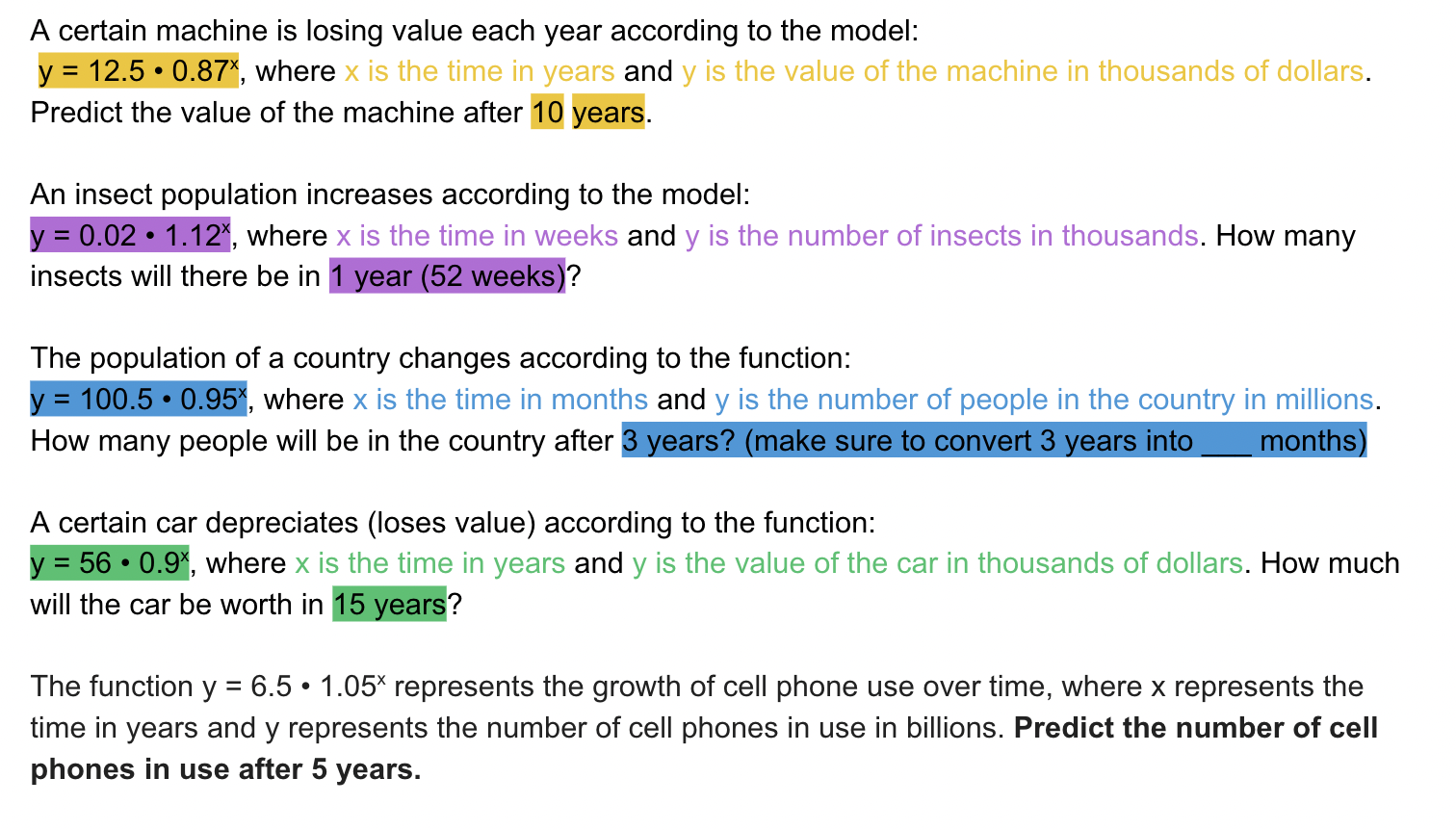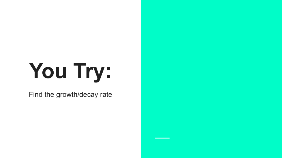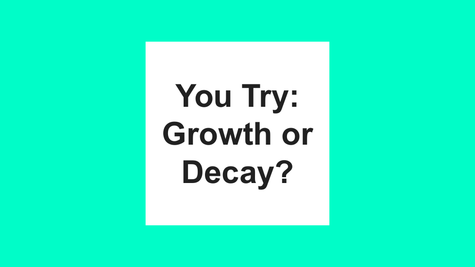 For y=989*1.75^{x}, the rate is _______ % and it is exponential _______