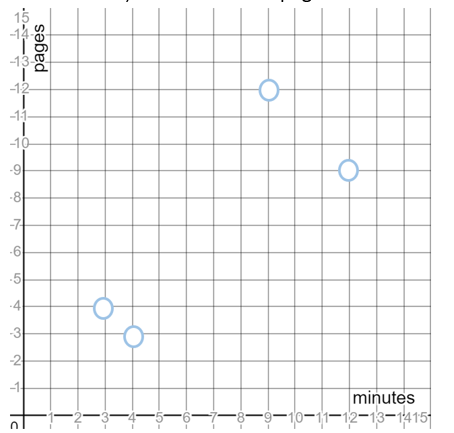 In 32 minutes, Joe can read 24 pages. Choose two points that lie on the line with the same slope.