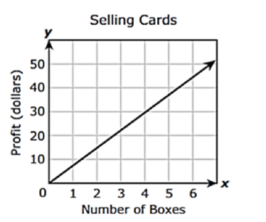 Emily sells greeting cards. The graph models the linear relationship between the number of boxes of cards she sells and her profit.