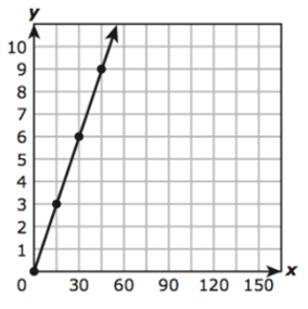 On a field trip there ate 3 adults for every 45 students. Which graph models a relationship with the same slope?