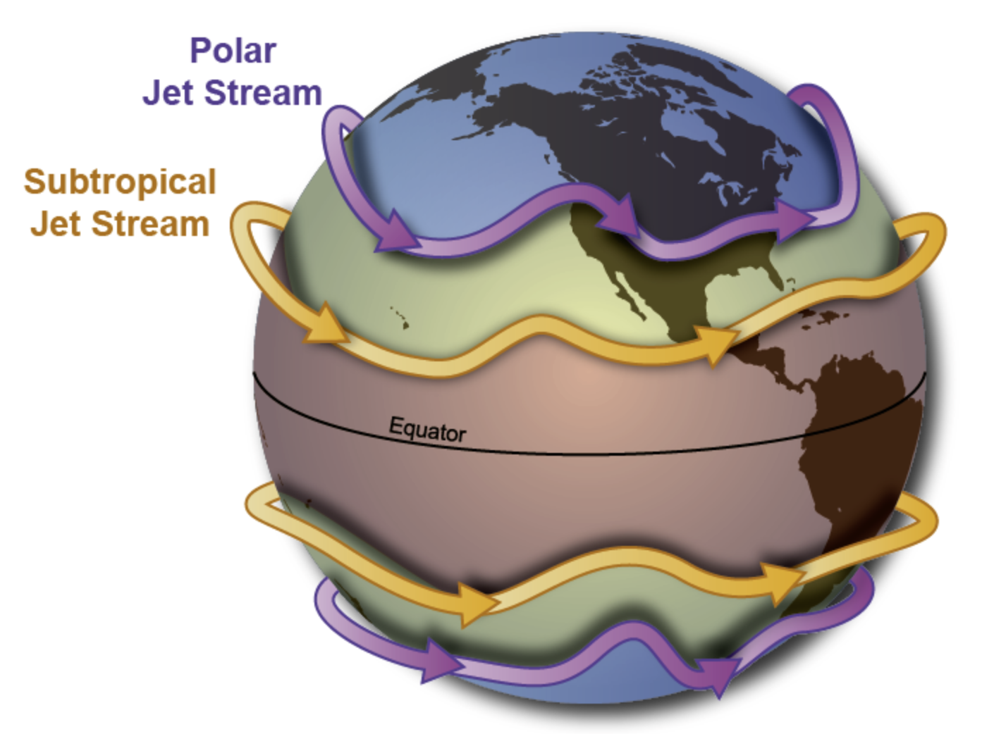 Jet streams "follow the sun" in that as the sun's elevation increases each day in the spring, the average latitude of the jet stream shifts poleward. (By Summer in the Northern Hemisphere, it is typically found near the U.S. Canadian border.) As Autumn approaches and the sun's elevation decreases, the jet stream's average latitude moves toward the equator.