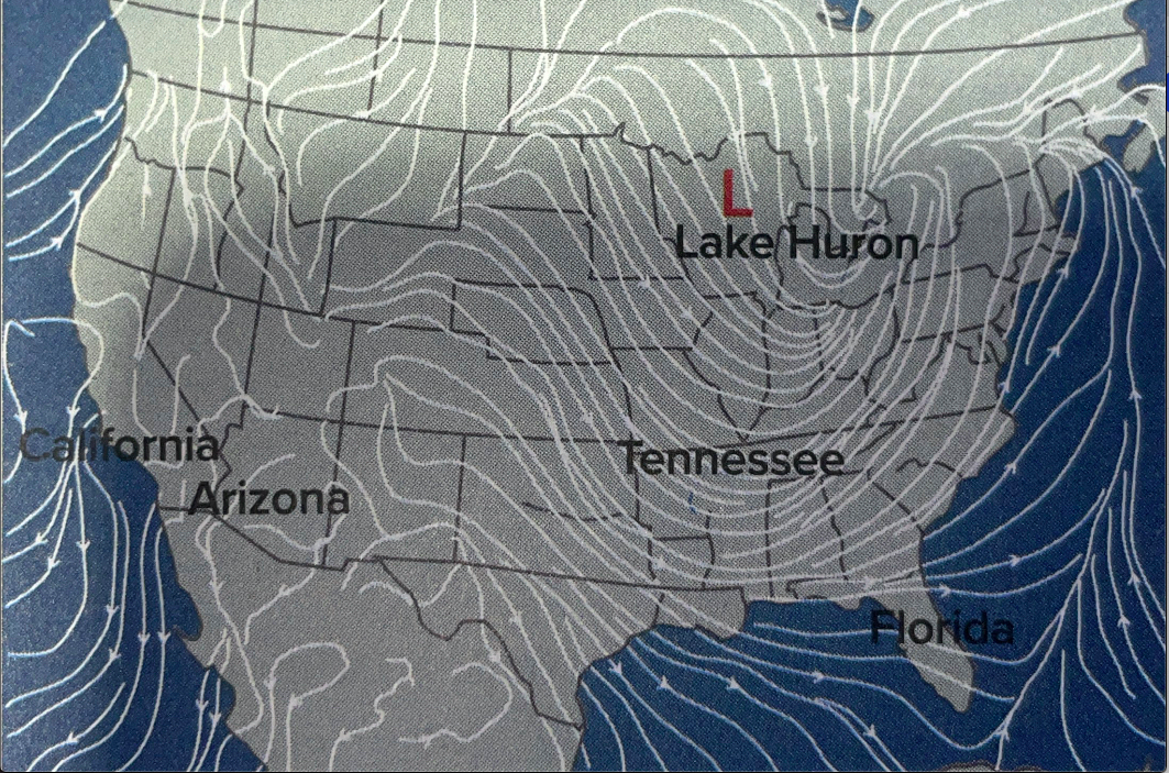 An arctic mass is approaching Lake Huron. Identify how this mass will affect the weather in the area.