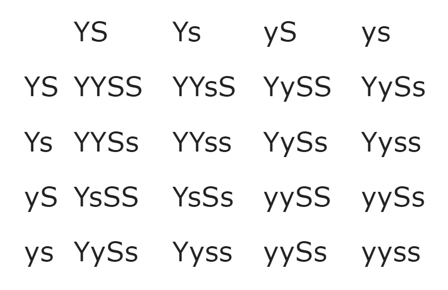 The diagram shows a dihybrid cross of two bean plants. Yellow (Y) is the dominant flower color and smooth (S) is the dominant leaf texture.