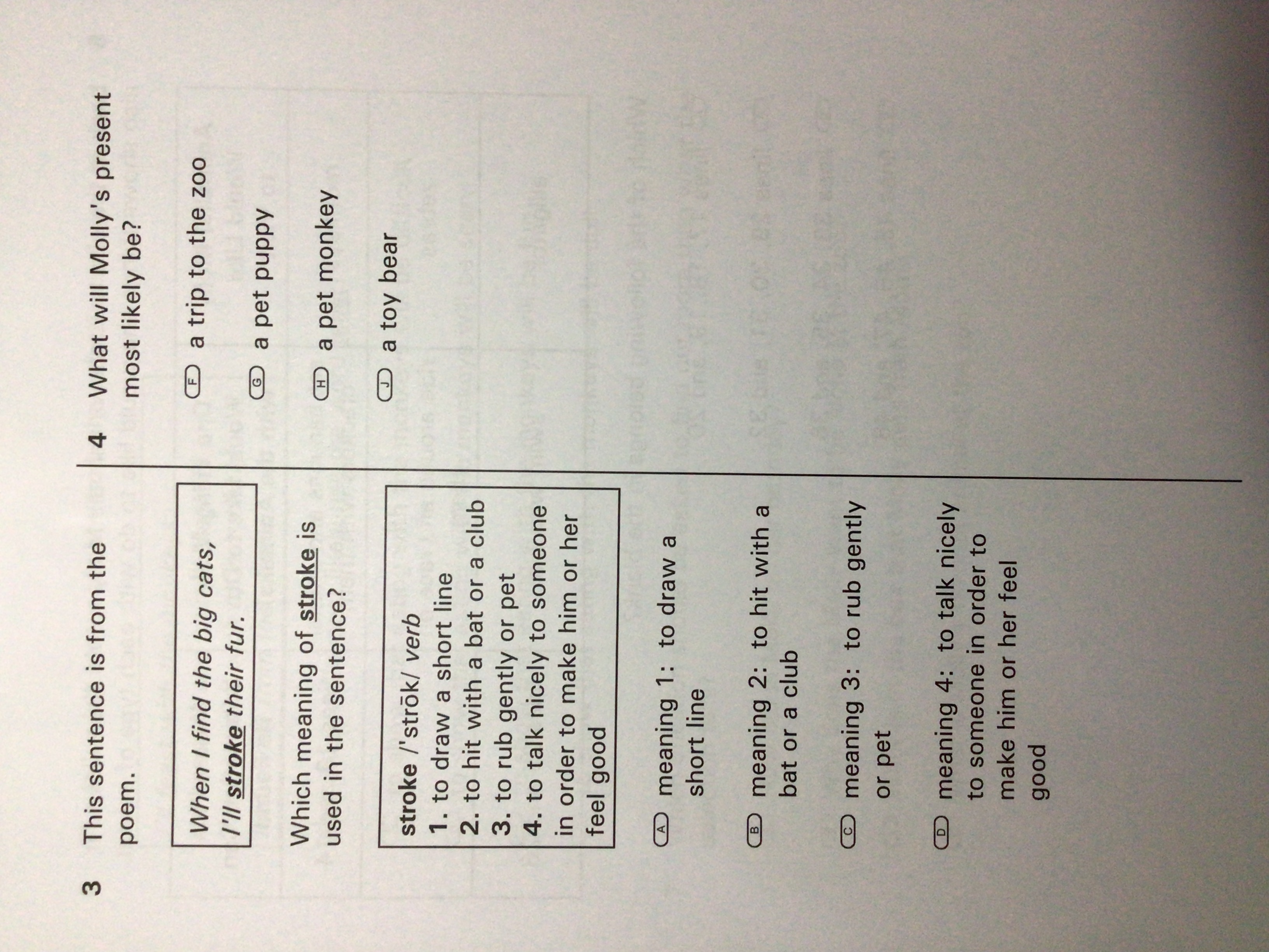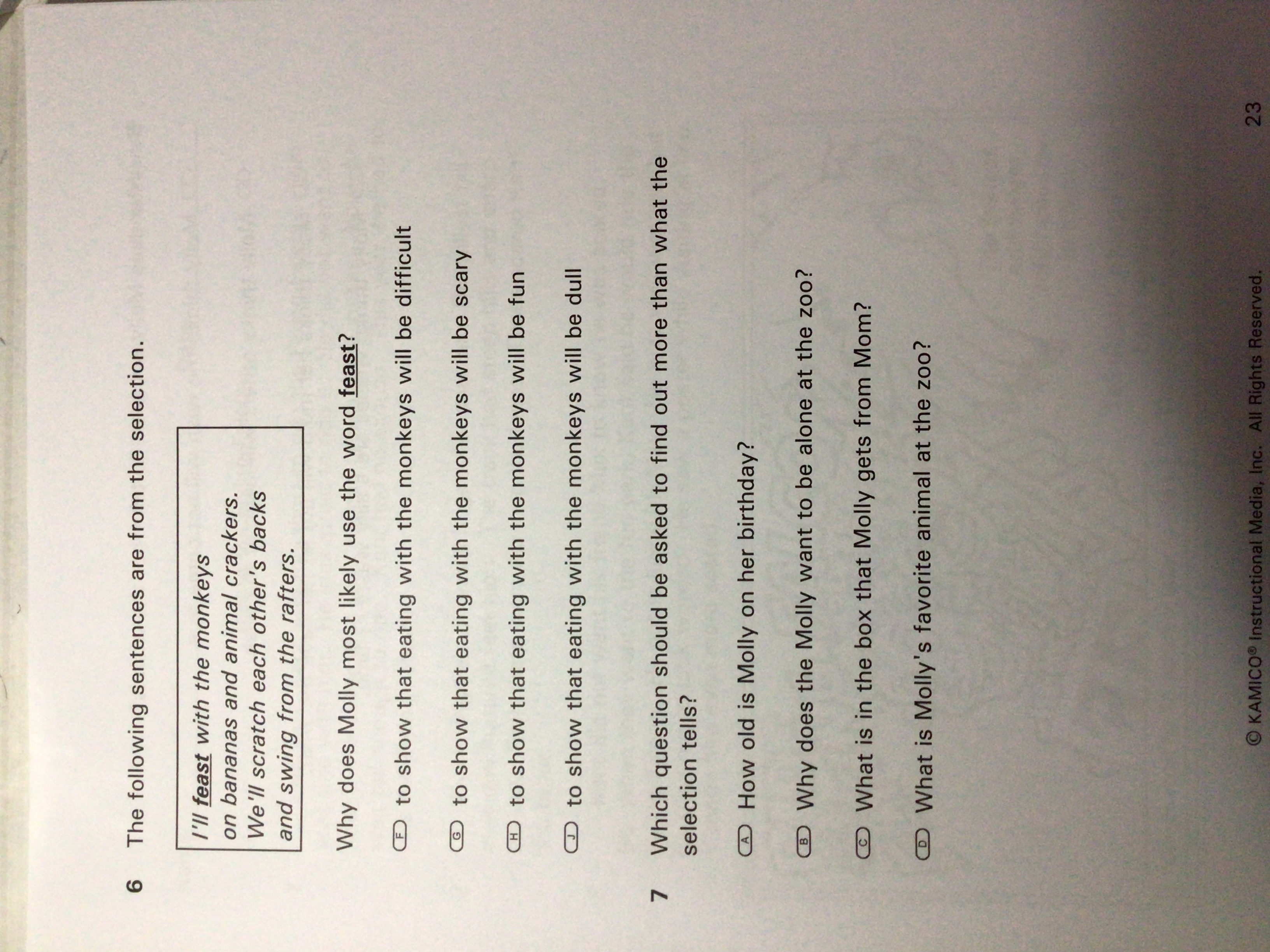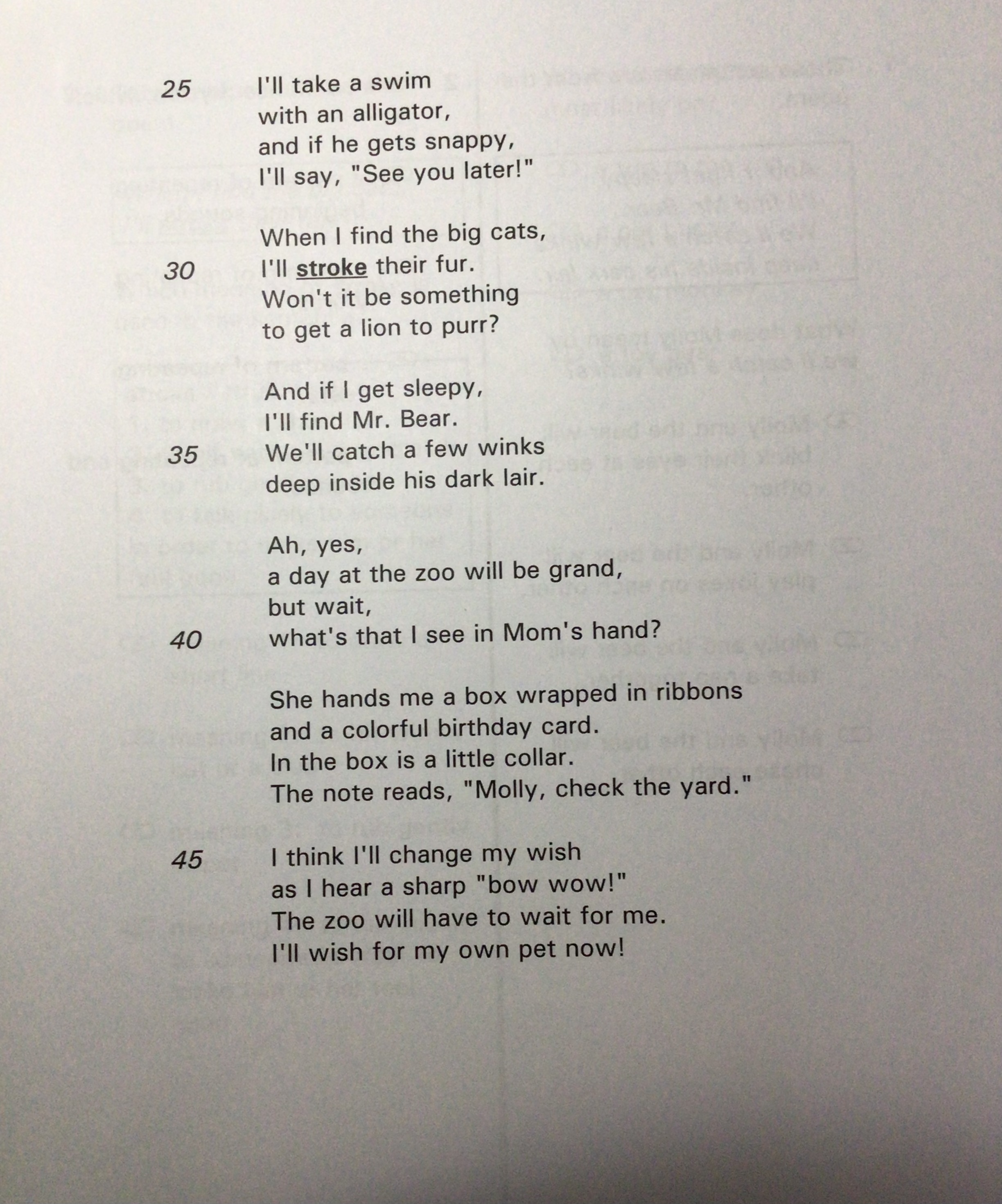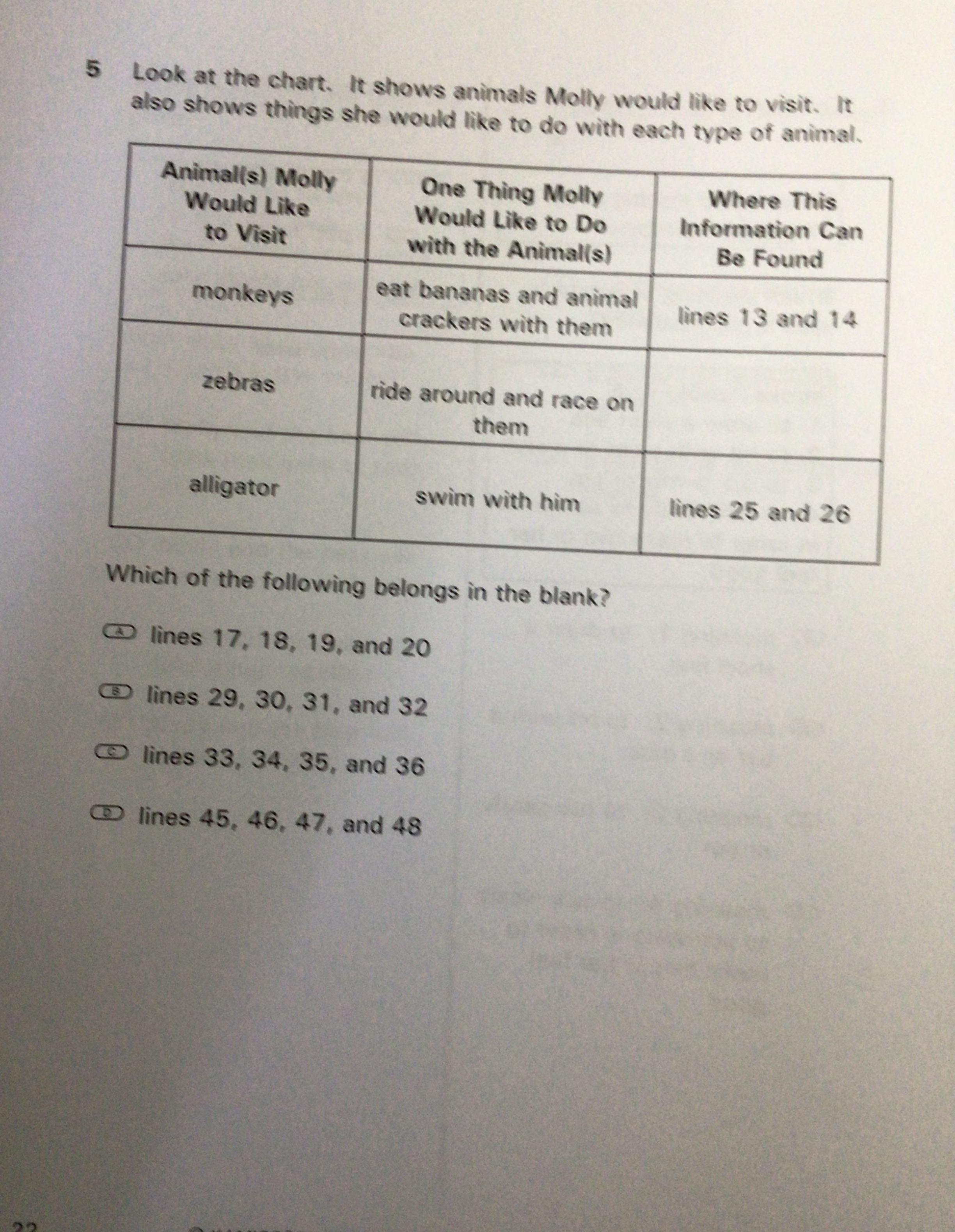 Look at the chart. It shows animals Molly would like to visit. It also shows things she would like to do with each type of animal.