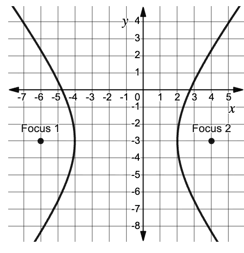 Does a hyperbola exist that has domain all real numbers and foci (-3, 5) and (7, 5)? Explain.
